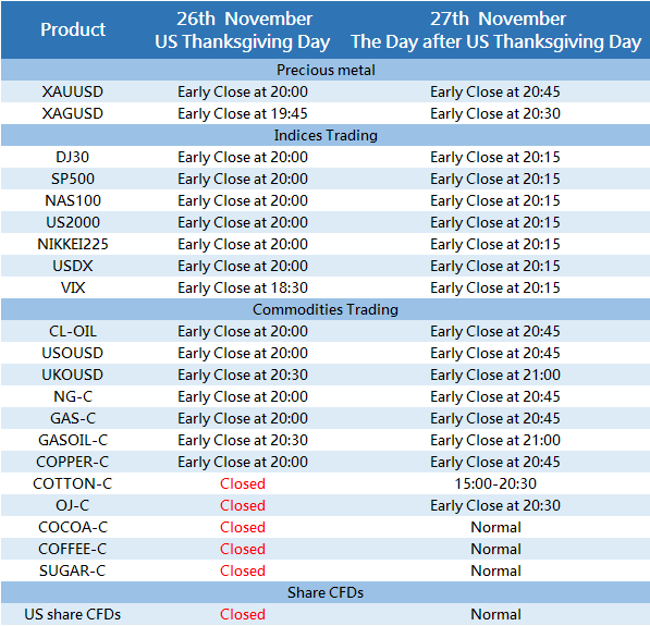 Please note change of the following some products due to the US Thanksgiving Holiday from November 26th to November 27th 2020: