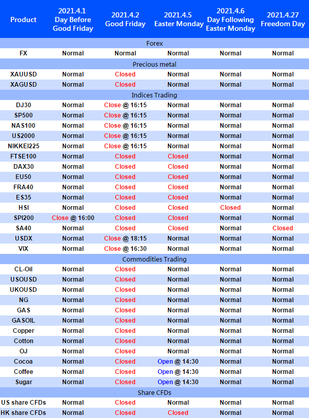 Please note change of the following some products due to The Good Friday, Easter Monday and Freedom Day.
