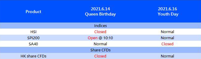 Please note that adjustment on following products due to Queen Birthday and Youth Day.