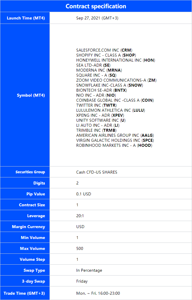 Please check our official page to get more detail about US shares CFD: