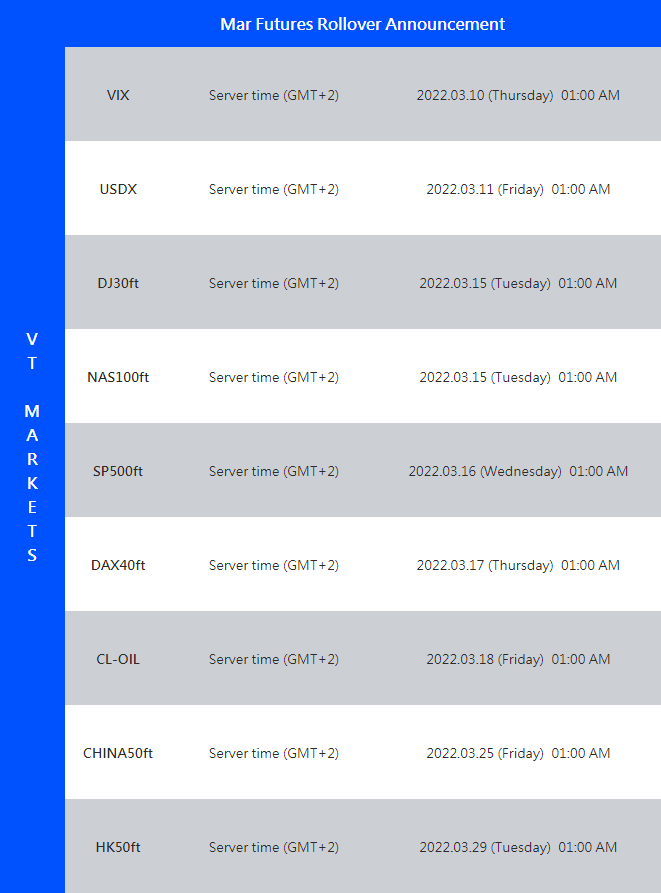 VT Markets Mar futures rollover announcement