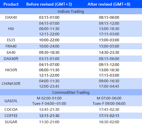 2. Some products will change the trading time in MT4/MT5 System.