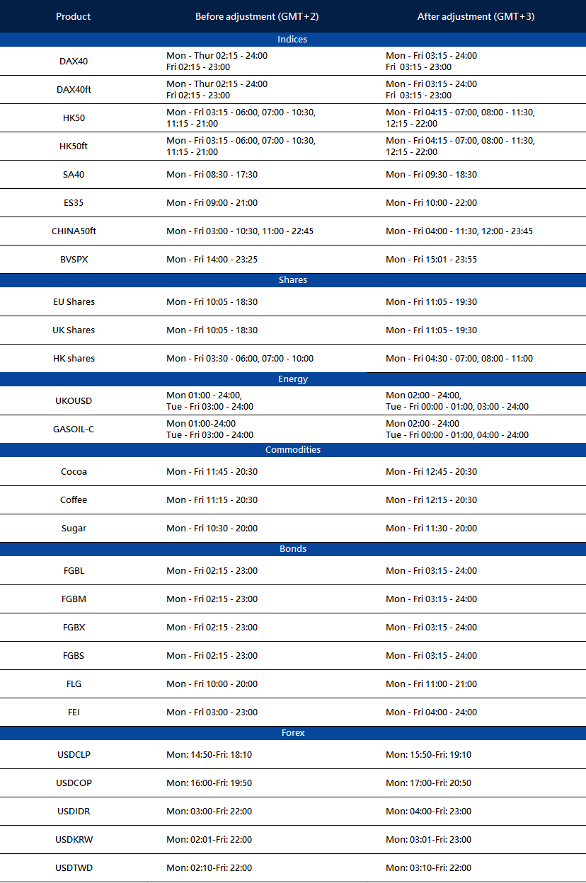 Please consider below carefully: The trading sessions of some products on MT4/MT5 will be changed as follows.