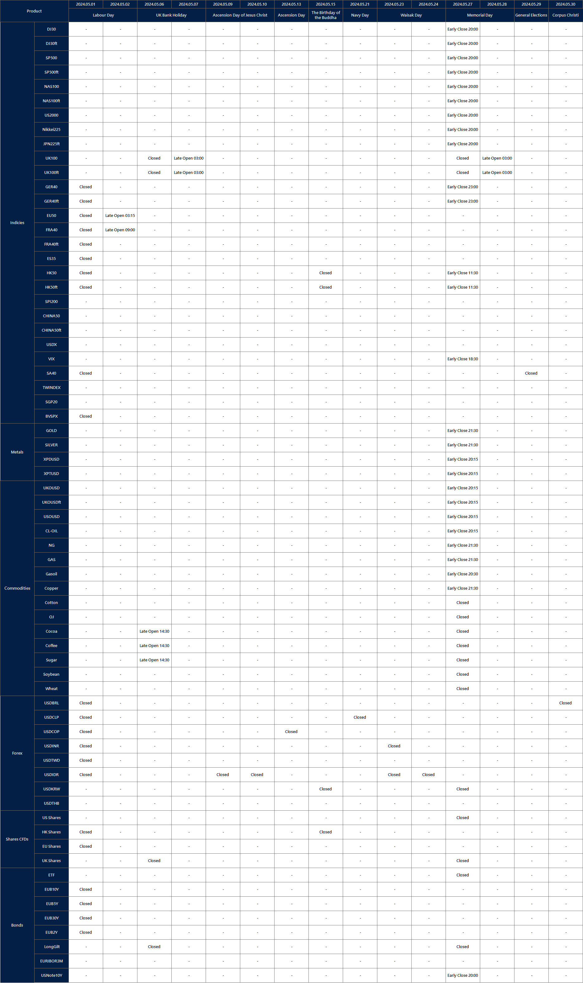 Note: The dash sign (-) indicates normal trading hours.