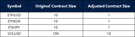 1. The trading volume of the above products will be adjusted to 10 times the original lot size, including open/pending orders.