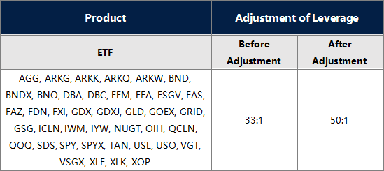 2. The margin requirement of the trade may be affected by this adjustment. Please make sure the funds in your account are sufficient to hold the position before this adjustment.