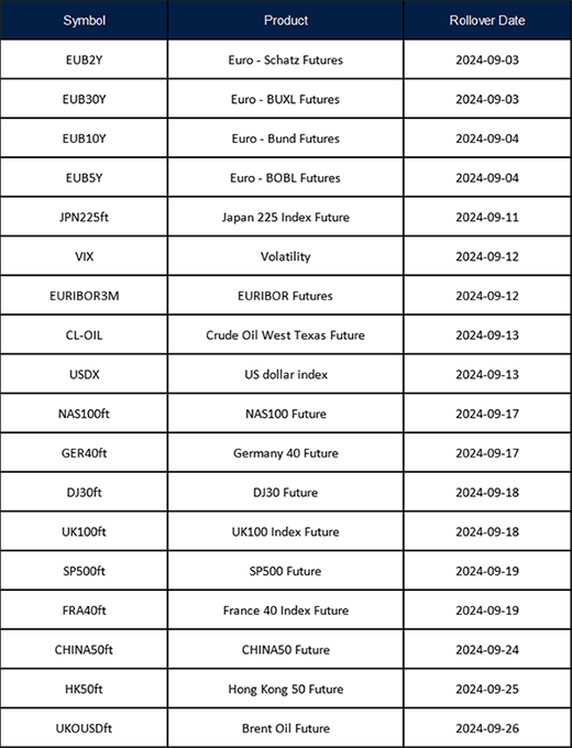 • Please ensure that all take-profit and stop-loss settings are adjusted before the rollover occurs.