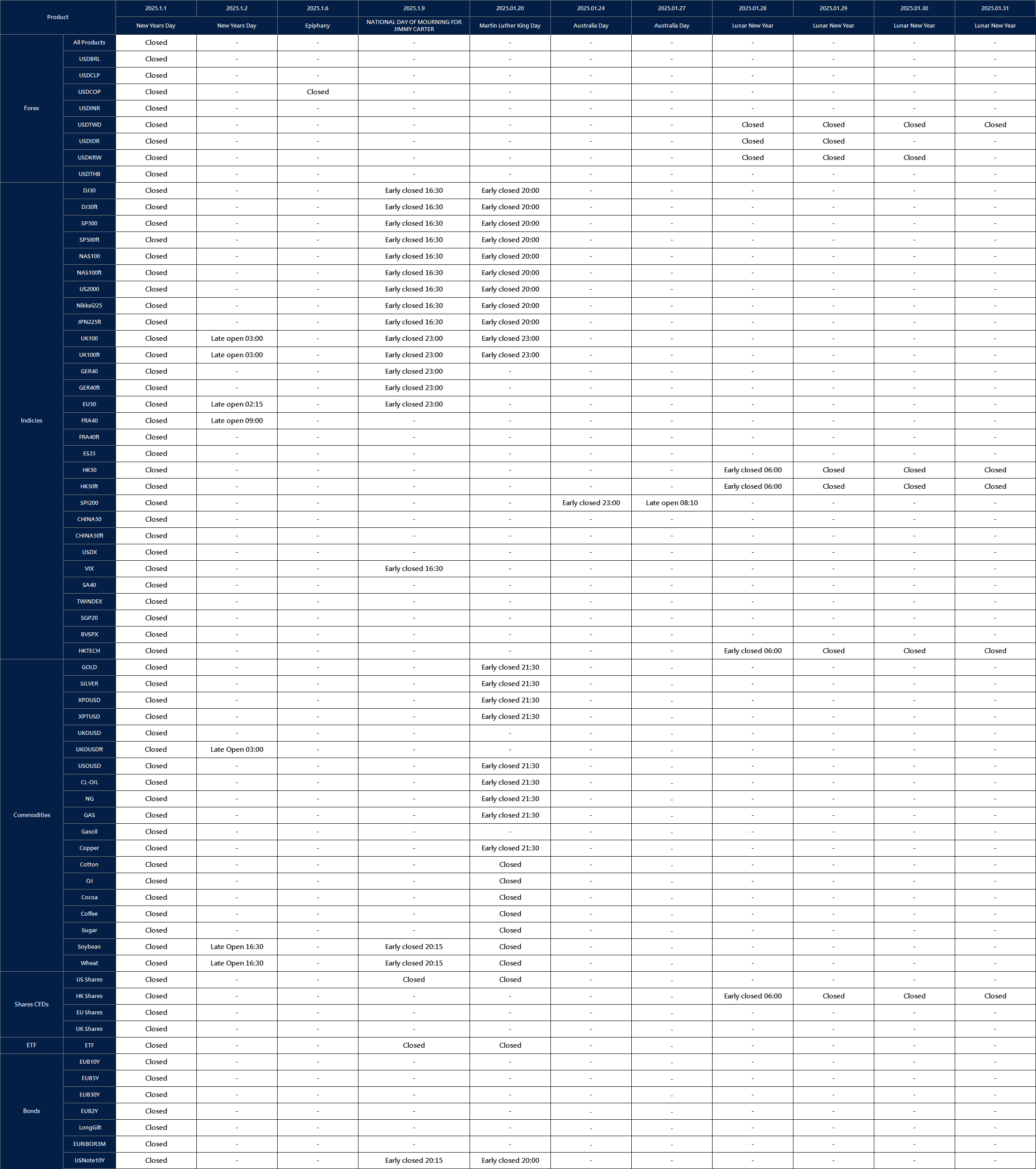 Note: The dash sign (-) indicates normal trading hours.