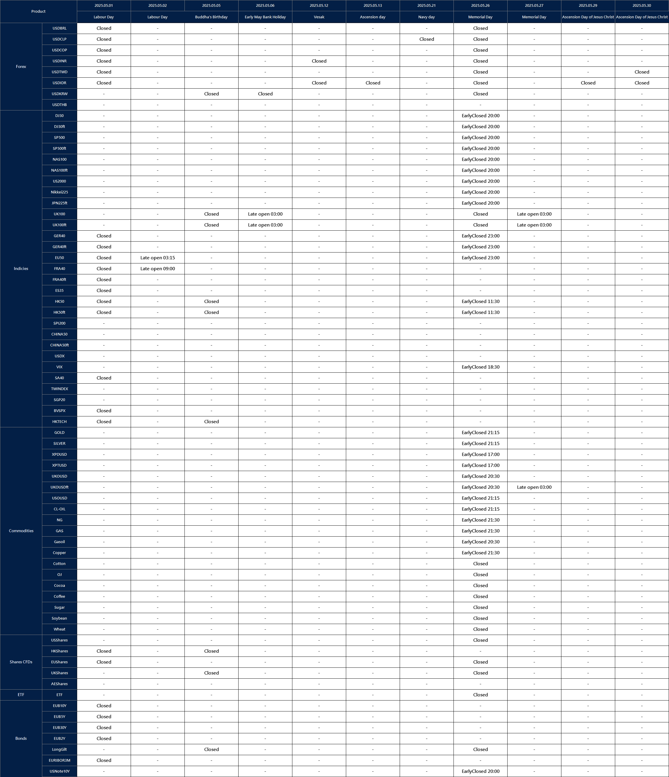 Affected by international holidays, the trading hours of some VT Markets products will be adjusted. Please check the following link for the affected products: