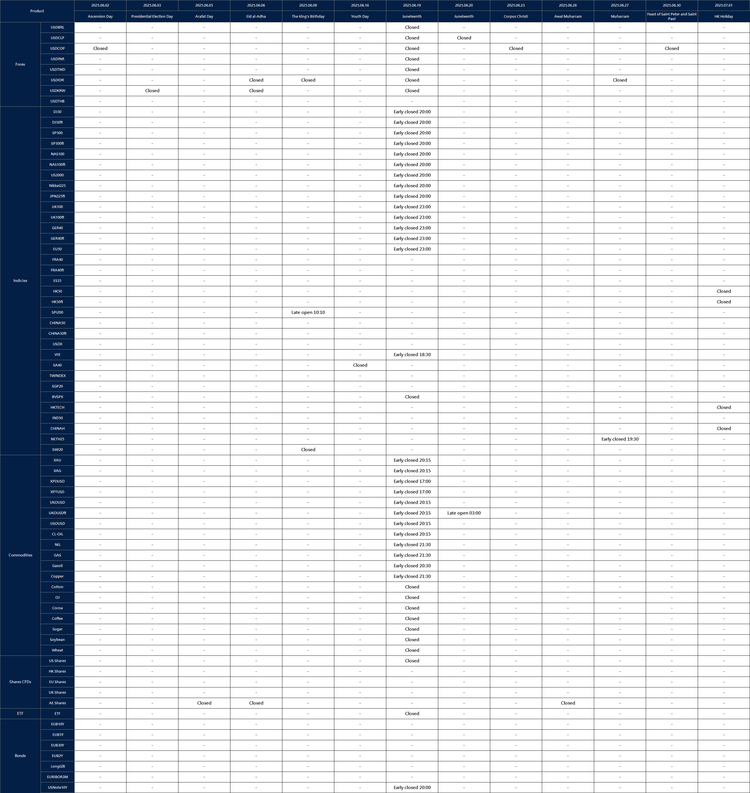 Affected by international holidays, the trading hours of some VT Markets products will be adjusted. Please check the following link for the affected products: