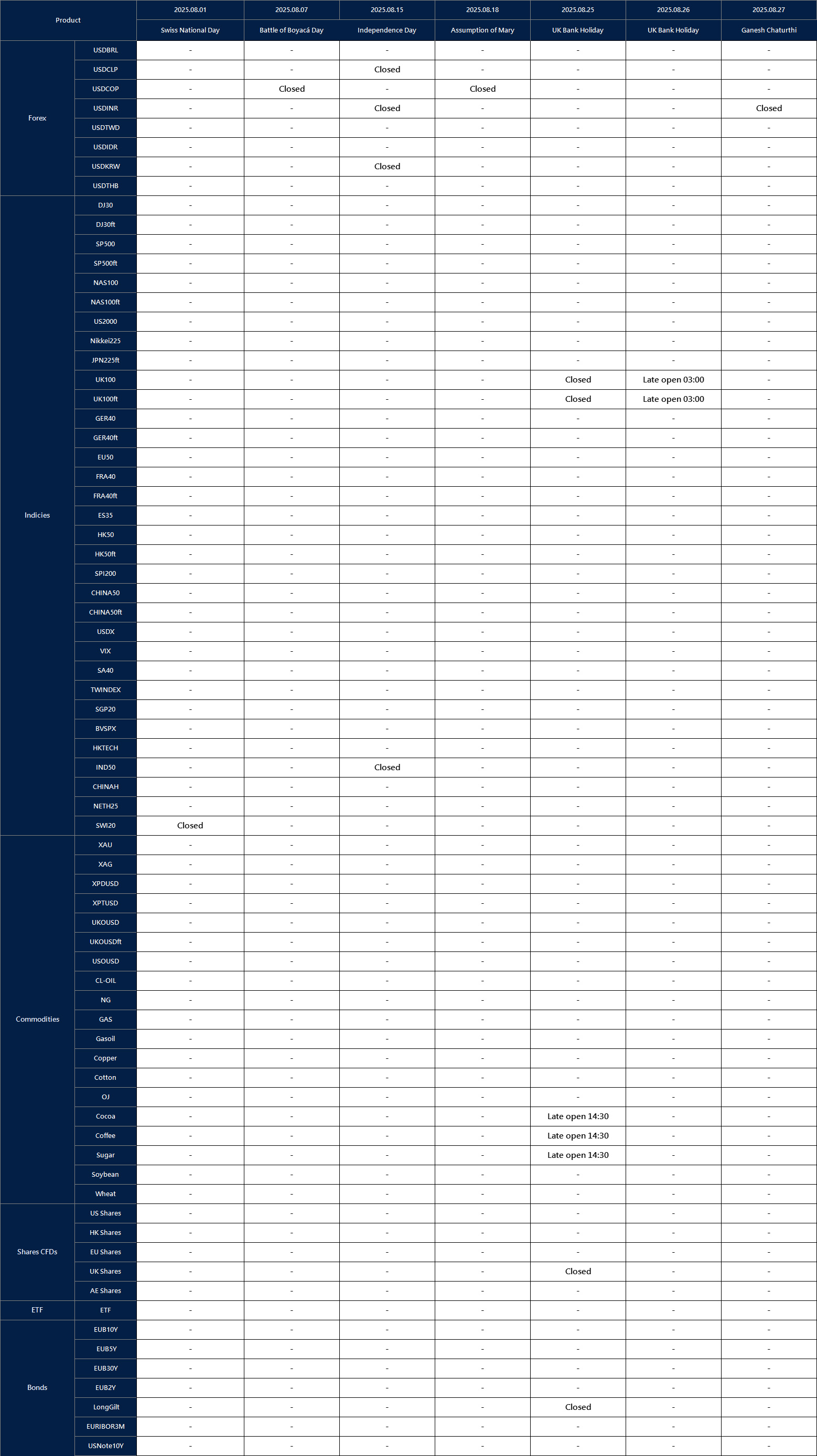 Affected by international holidays, the trading hours of some VT Markets products will be adjusted. Please check the following link for the affected products: